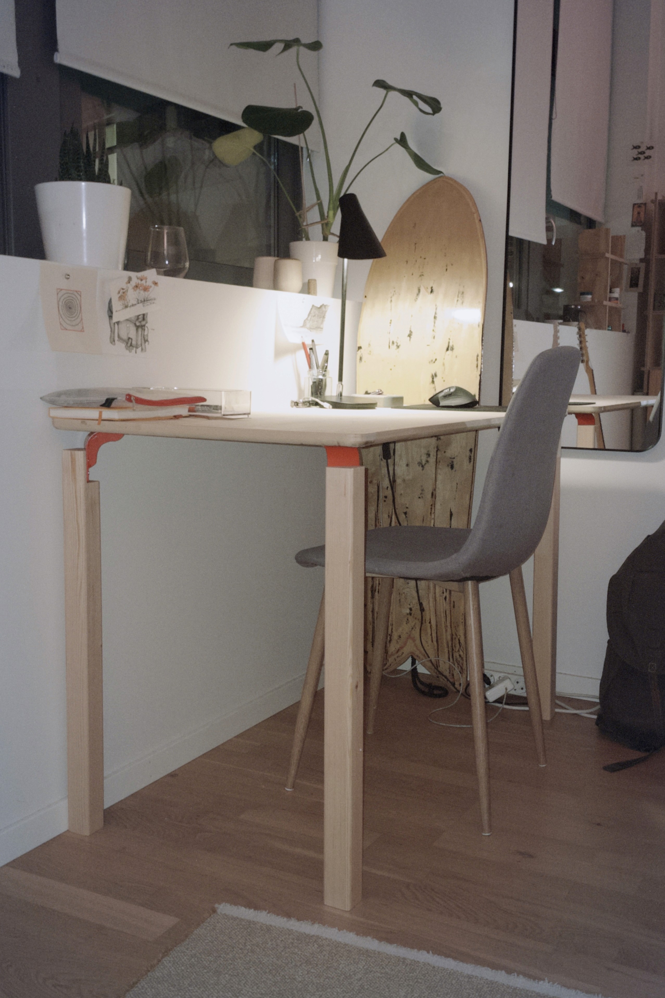 Desk table concept made out of pine.