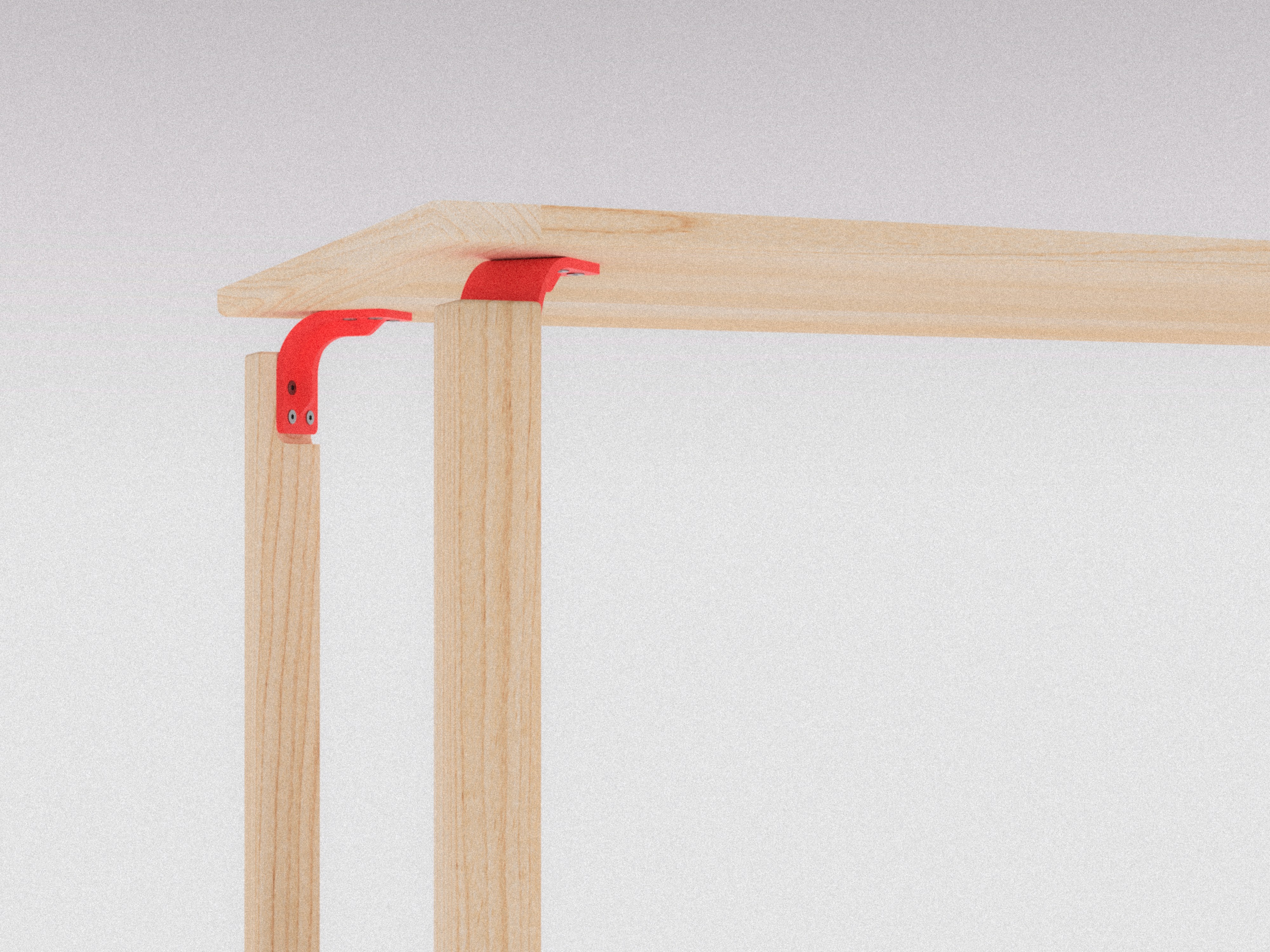 A diagonally placed bracket increases rigidity in the table. Therefore the legs had to be cut at a 45° angle to keep the legs square to the top.
