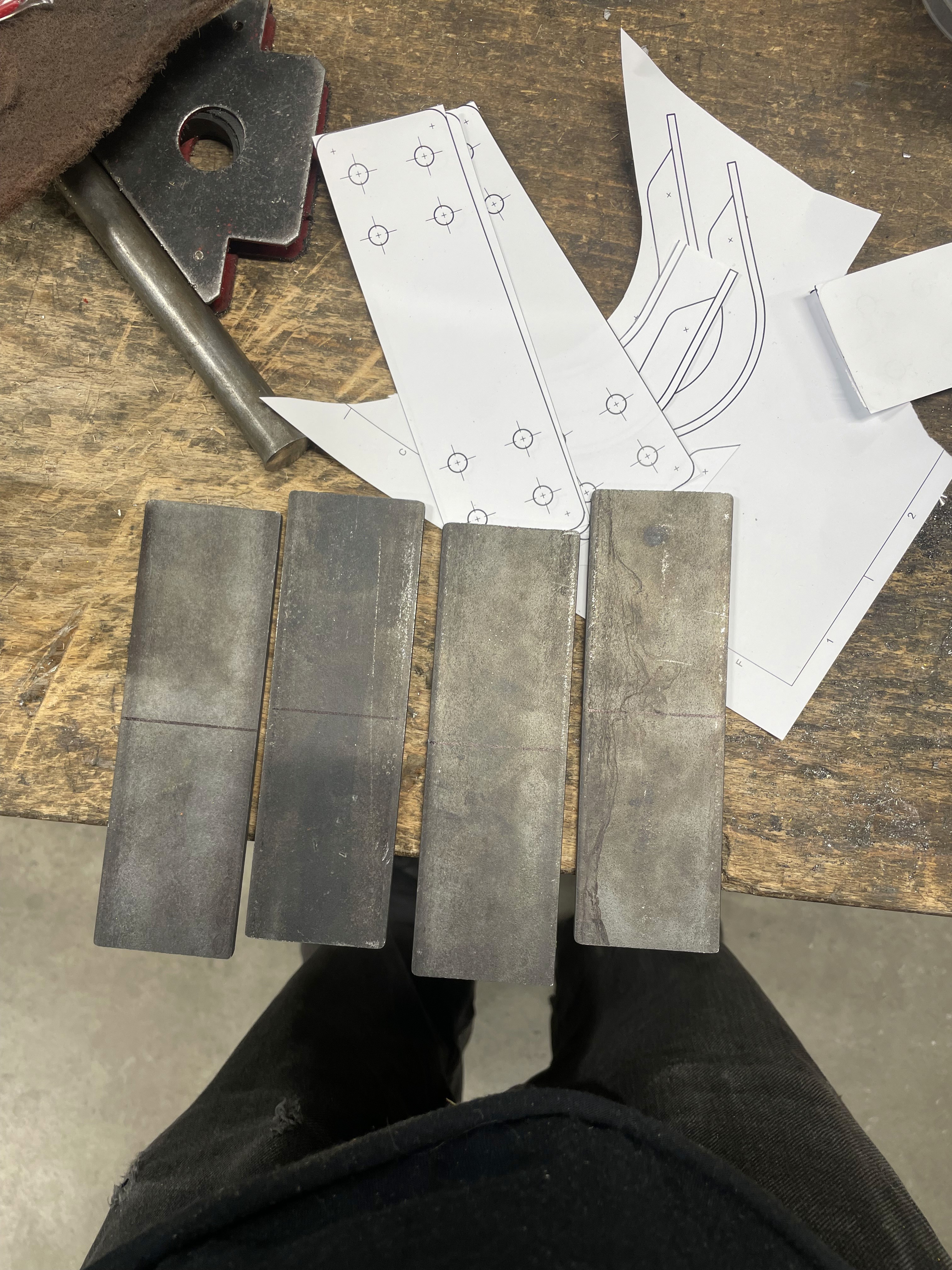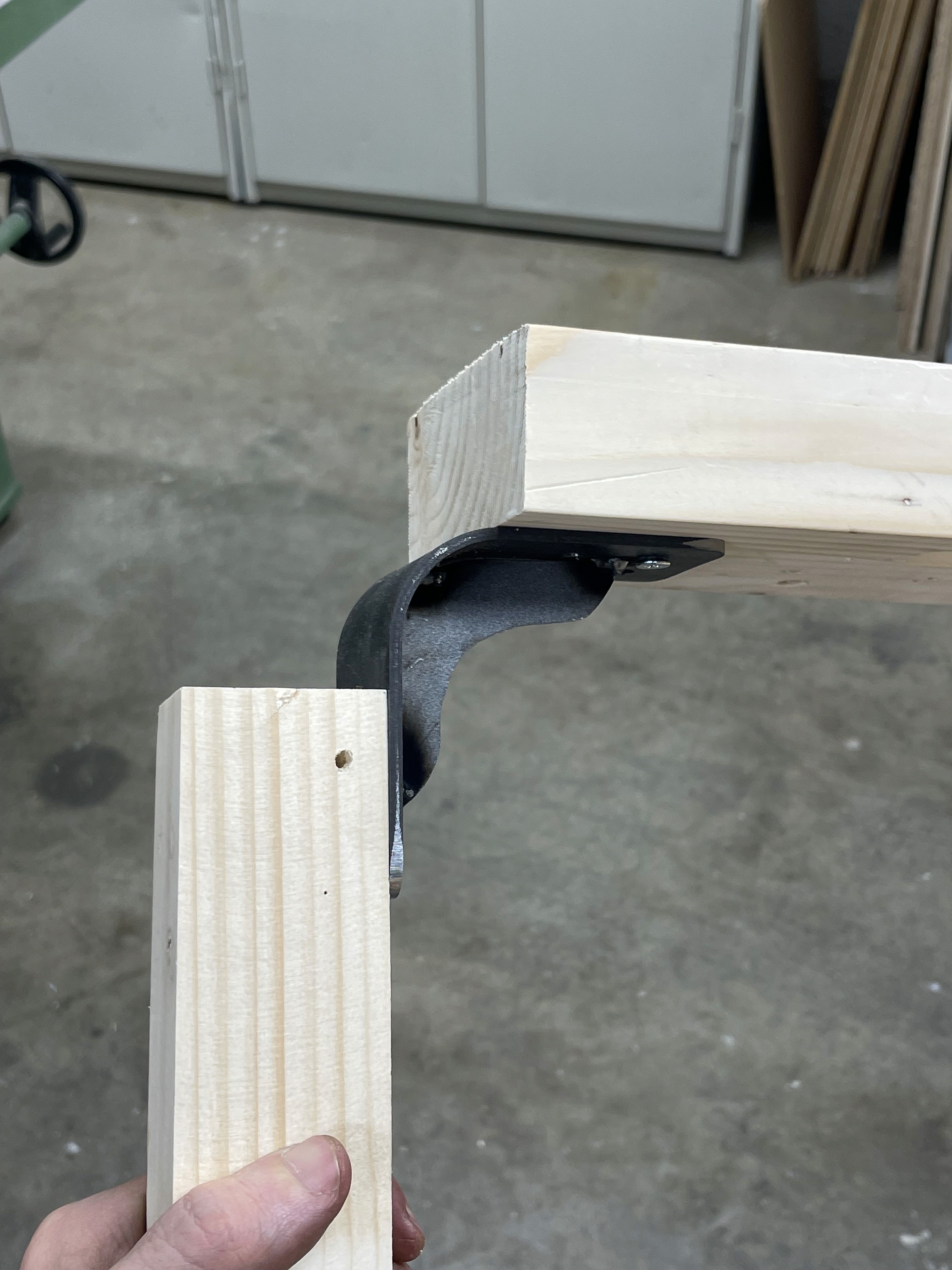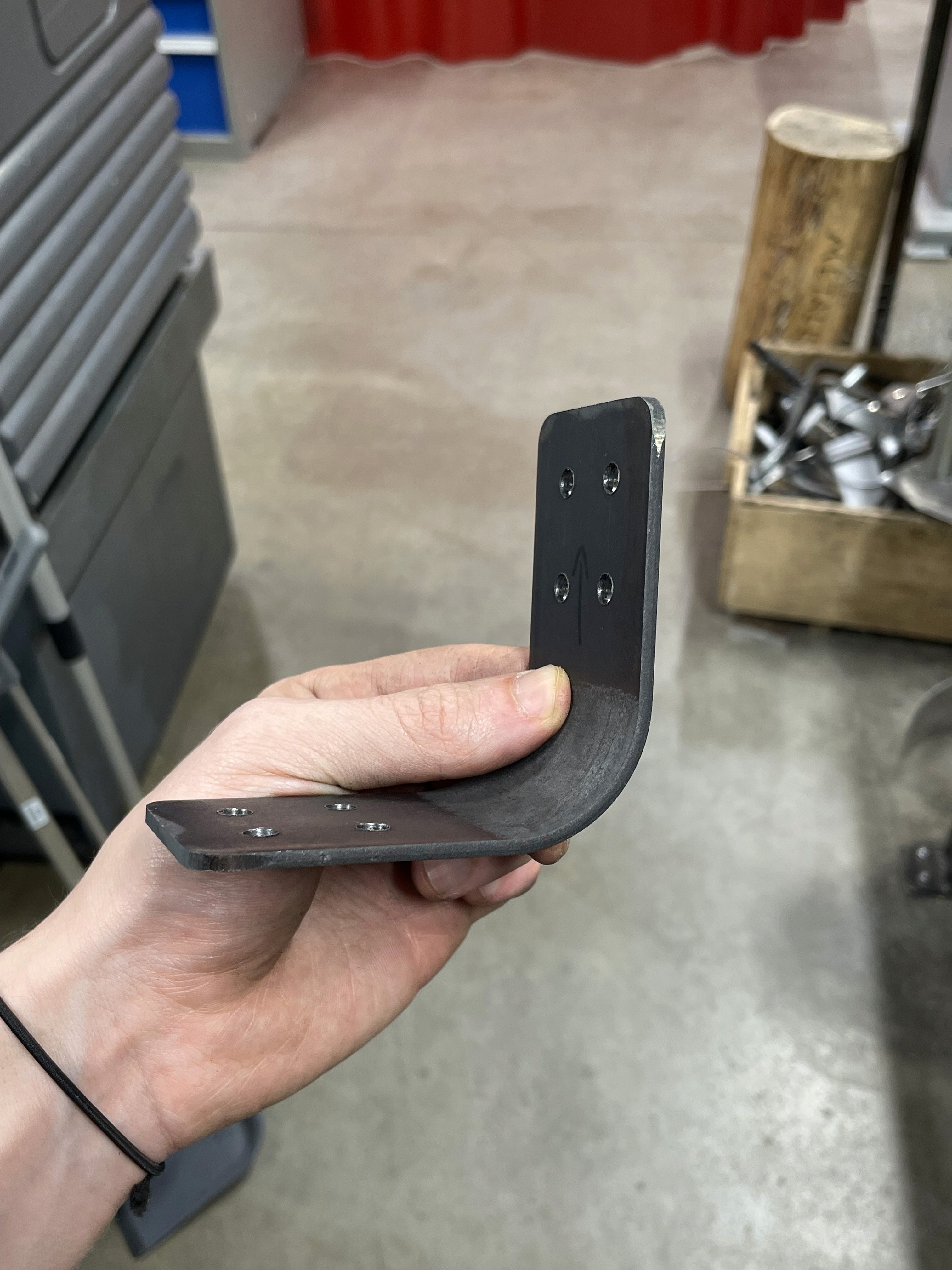 The brackets are the defining feature of Furuben. Each bracket is bent to a 90° angle, and an additional support rib is welded in place to increase structural rigidity.
